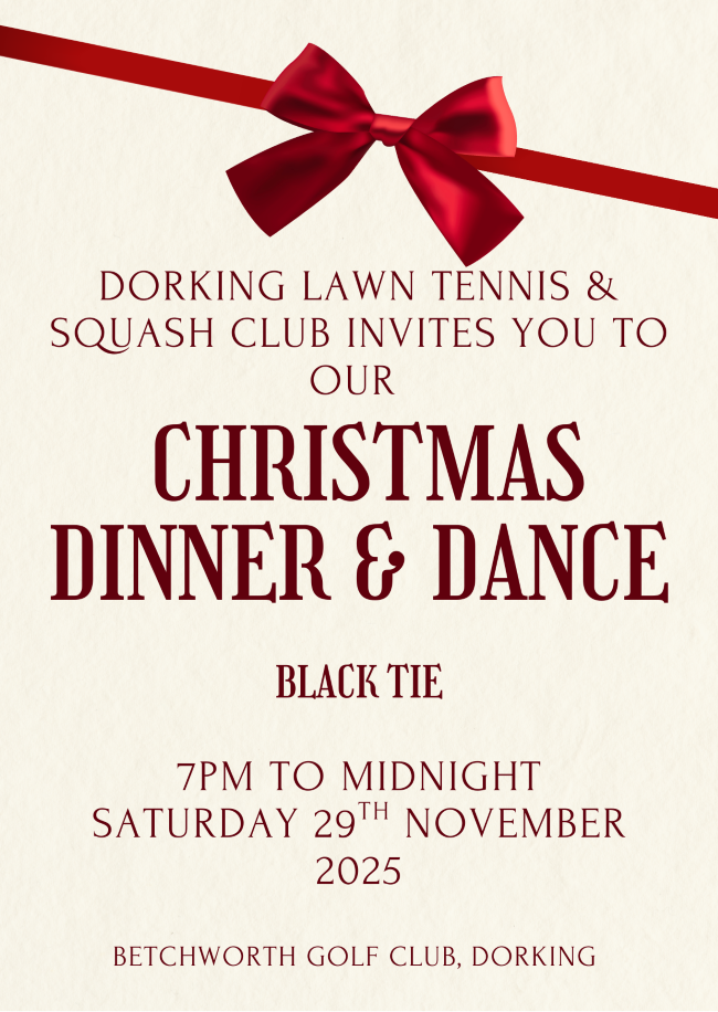 I am pleased to announce that tickets for the Dorking Lawn Tennis and Squash Club, Christmas Dinner and Dance are now available.